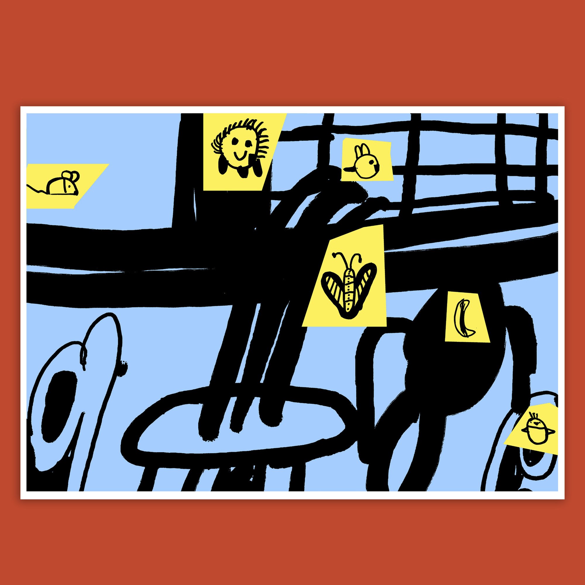 Collaborative print between Elena Zhivkova (5.5 years old) and Miroslav Zhivkov /dzhingibi